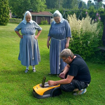 Det är alltid trosstärkande att se hur Gud, vår Far, ser till de minsta sakerna – och de största. Förra hösten bestämde vi oss för att köpa en robotgräsklippare och beställde en hos en återförsäljare. Då hade vi ingen aning om att syster Regine, som huvudsakligen har klippt gräset i alla år, inte kunde göra det denna säsong. Robotgräsklipparen hade visserligen en del ”barnsjukdomar” och behövde många justeringar. Men den var ändå en hjälp. Och när den var ur funktion fick vi njuta av gräsmattan, som blev en vacker blomsteräng! Det var också en glädje att återförsäljaren och hans medarbetare, som var tvungna att komma tillbaka flera gånger, sa att de kände en sådan frid när de körde in på vår gårdsplan.