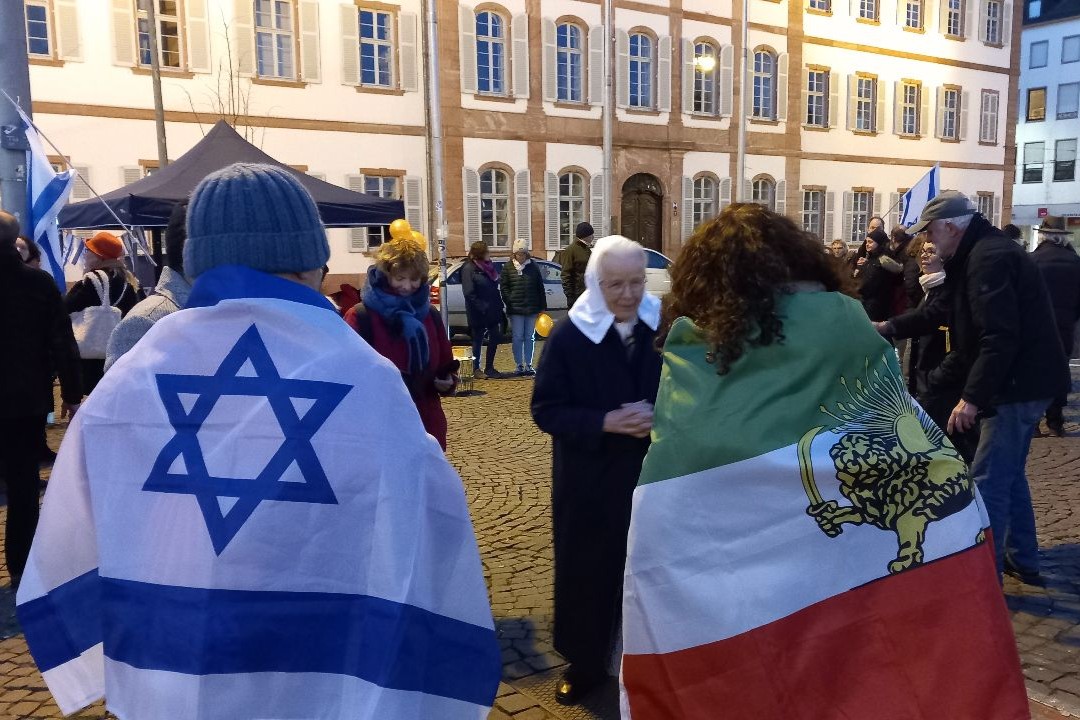 Sr. Angelina deltog i en Israelmarkering i Darmstadt. Även iranier står vid Israels sida.